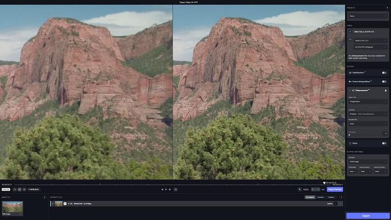 However, this video AI enhancer can only support the output of 1080P videos, so it may not be able to meet higher-quality needs. Additionally, some users also have complained about issues, such as lagging output videos, blurry segments of video clips, and so on. If you just want to handle a few short video footage, then you can give it a try. Otherwise, it is recommended to consider other options.