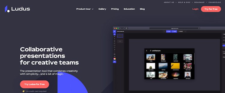 Ludus is brand-new and promising presentation software. You can use other web platforms like YouTube, Vimeo, DropBox, GIPHY, and others to link content with this. It has some lovely design tools, such as the capacity to upload fonts, combine colors, employ overlays, and more.