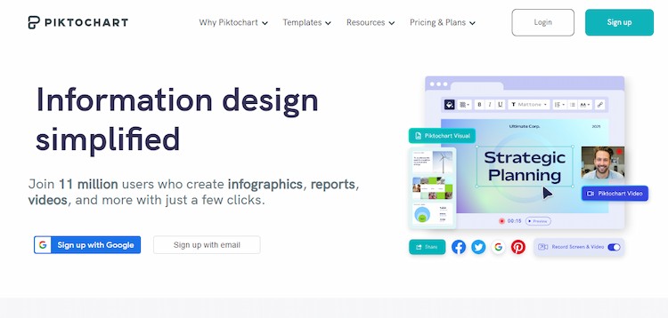 Piktochart is a web-based, all-in-one visual design tool for producing infographics, reports, presentations, social media graphics, posters, and prints. It also features an online video editor. When you concentrate on information design, creating visual stories from content and data or editing films for social media is simple.