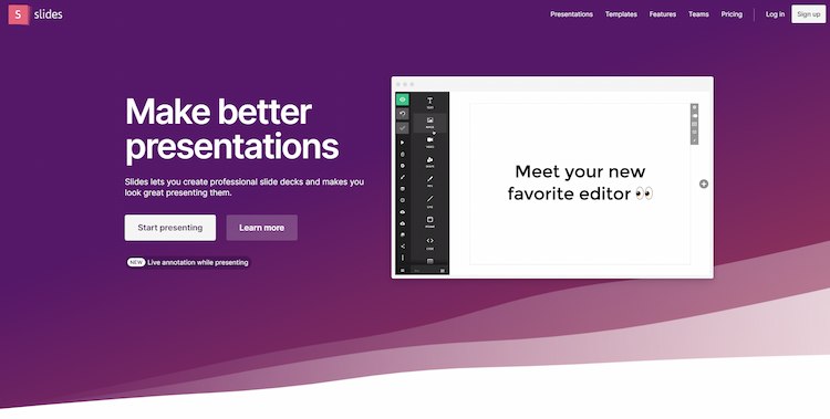 This is a presentation tool, the name of which says a lot. It provides users a platform to make stunning presentations with a straightforward user interface. It enables presentation management on the cloud.