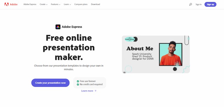 2. Adobe Express: Free online presentation maker