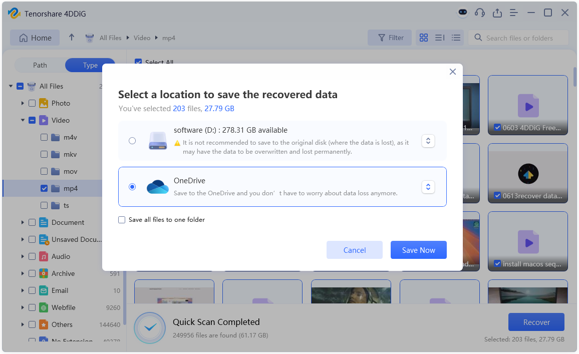 Step 3: 4DDiG allows you to preview recoverable files to ensure their integrity. Next, select the files you want to restore and simply click on the “Recover” button. You’ll be prompted to choose a secure location to save them.