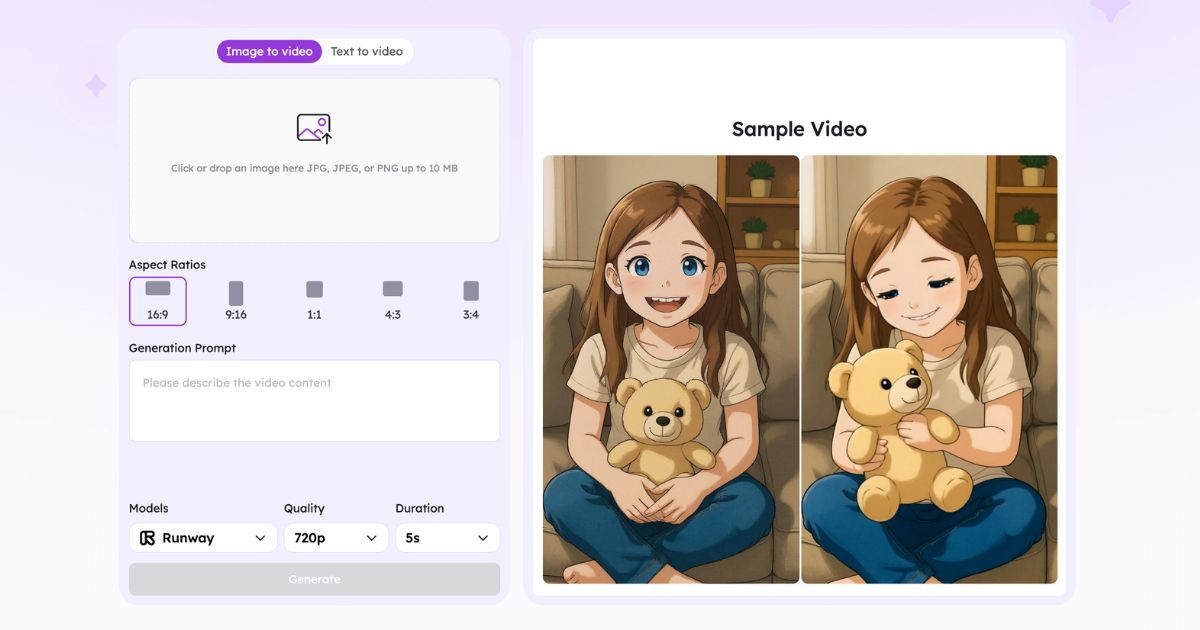 Experience the power of transforming a single image and a few words of imagination into a dynamic video now!